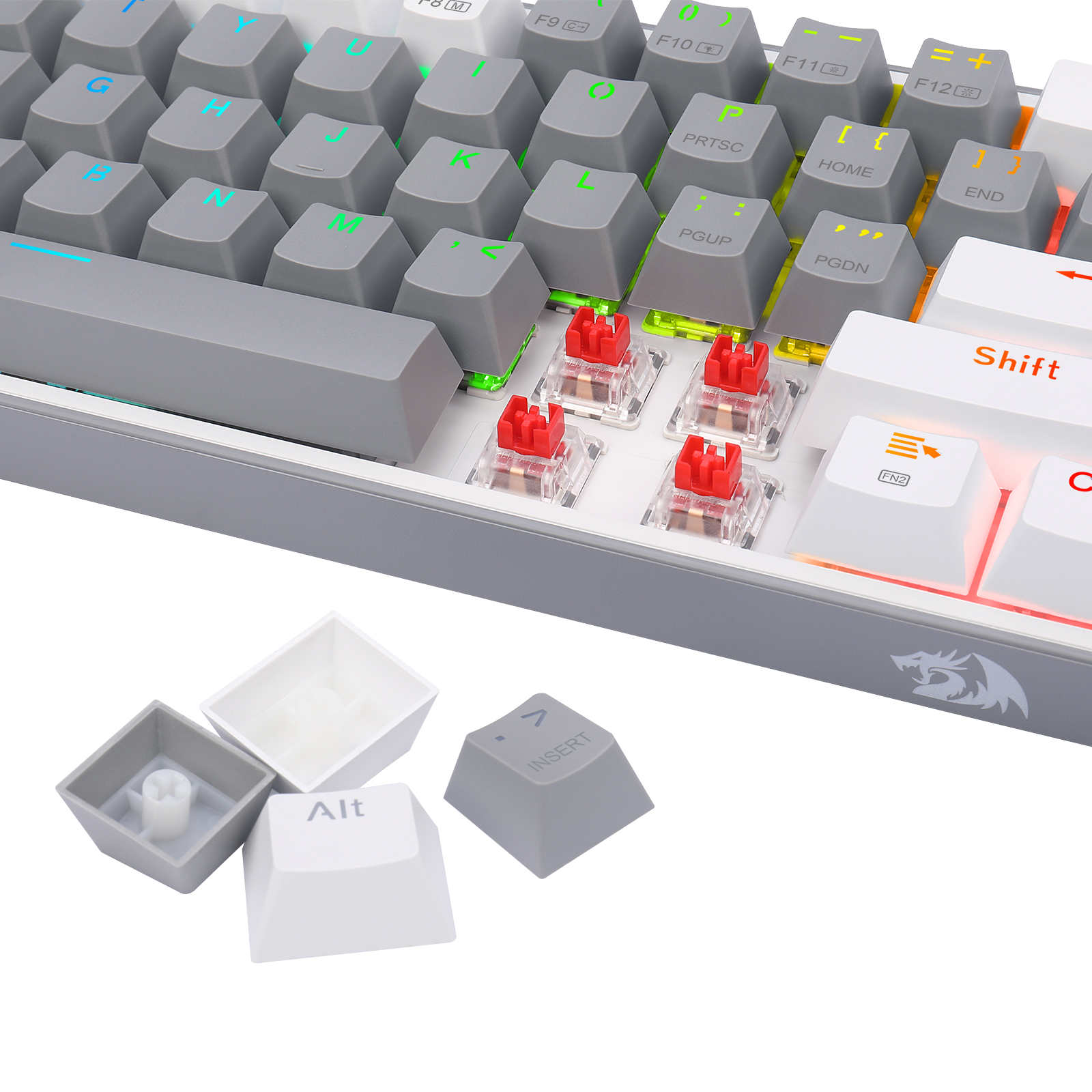 - Contenido de la caja: Extractor de keycaps, Extractor de switches, 4 switches mecánicos, Manual de uso, Sticker Redragon.