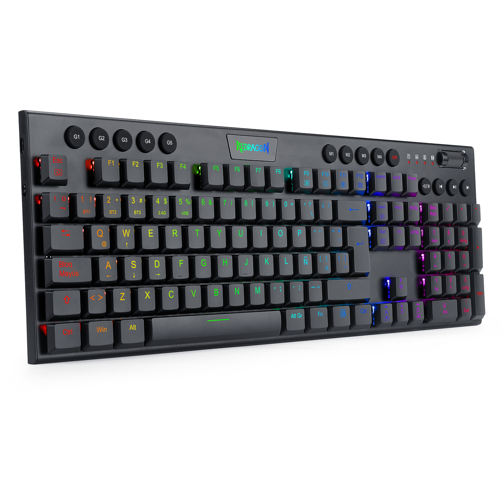 – Tipo Switch: Redragon Red Ultra low profile, lineal, fuerza de actuación 45 gr